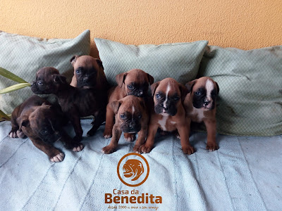 Nasceram 7 cachorros, 4 machos (2 tigrados, 2 fulvo) e 3 fêmeas (1 tigrada, 2 fulvas)